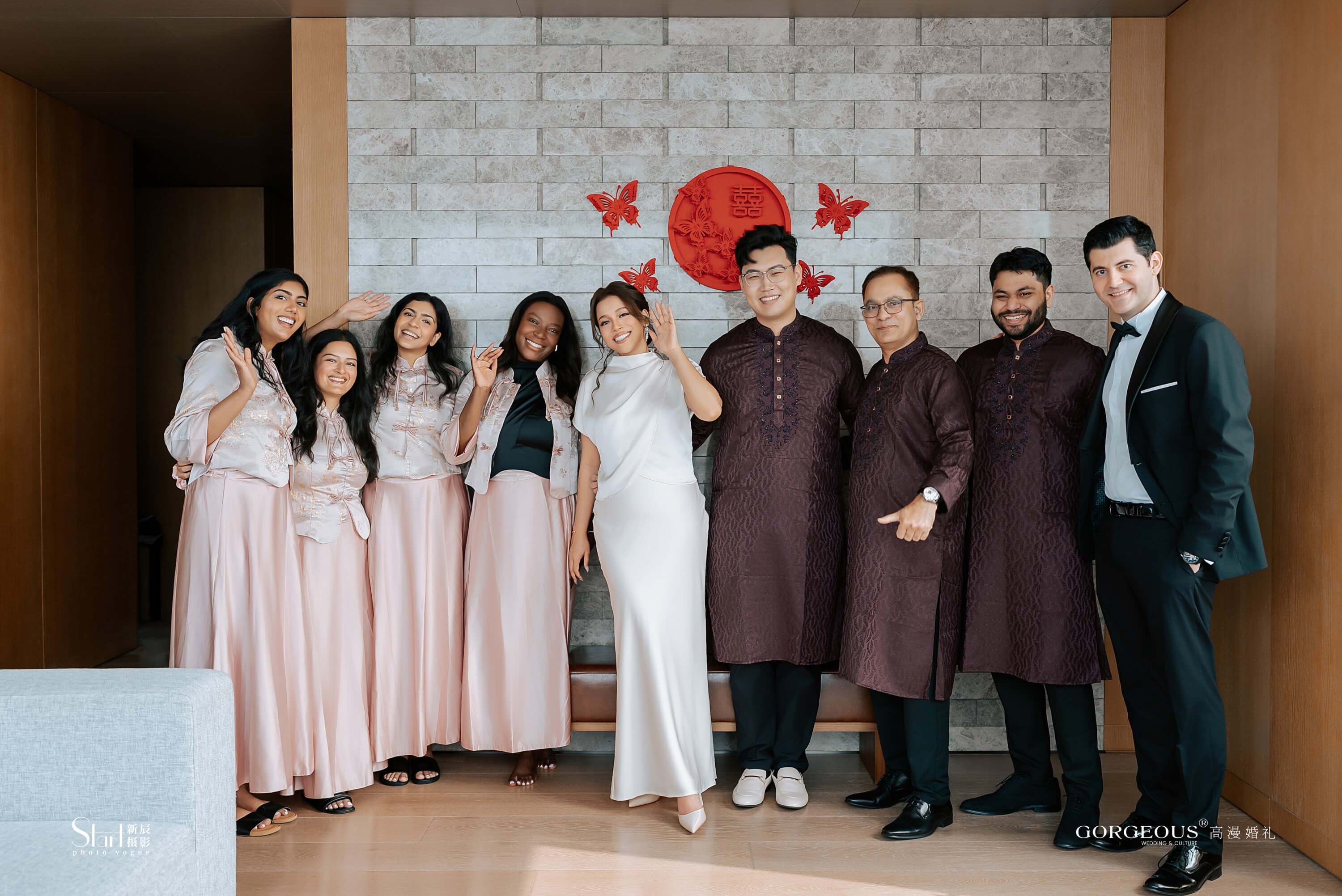 来自孟加拉的伴娘们穿着中国风样式的伴娘服来为这场婚礼献上祝福。